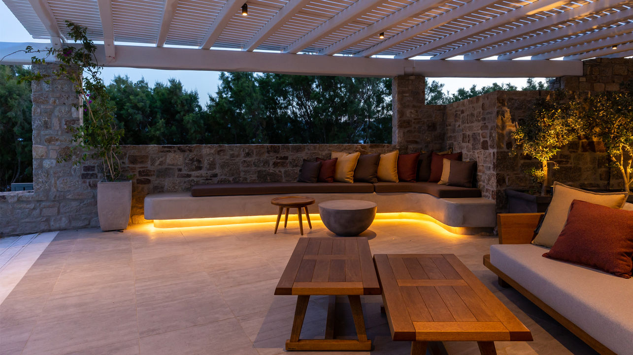 Designed with earthy materials, stone, and wood, Villa Orion creates an atmosphere of absolute relaxation and connection with nature. Whether unwinding by the poolside lounge, enjoying a private beach escape, or gathering around the fire pit at sunset, this villa is the perfect setting for an unforgettable Mykonos experience.